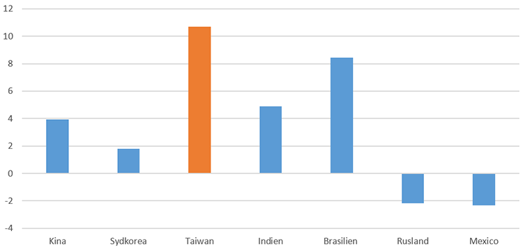 Afkast i % på de største markeder fra Emerging Markets i juli, målt i kr.