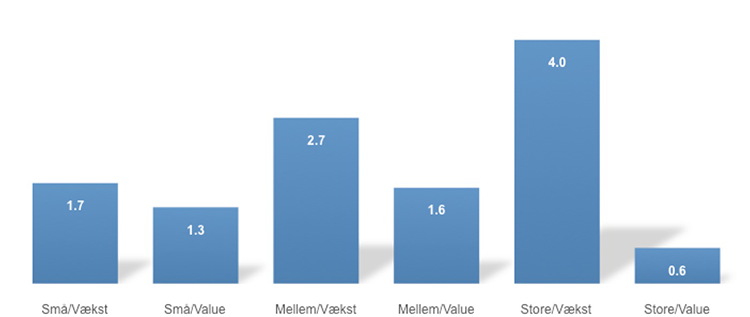 De faldende renter var godt nyt for de store vækstaktier. Det var især udtalt i USA, hvor selskaber som Facebook, Amazon og Google så tocifrede stigninger i deres aktiekurser i april. At både de største aktier og vækstaktierne klarede sig bedst i april udgør en massiv modvind for vore ligevægts- og valueafdelingerne. Afdelingerne med ligevægt og value har derfor alle klaret sig noget dårligere end deres respektive benchmarks.
