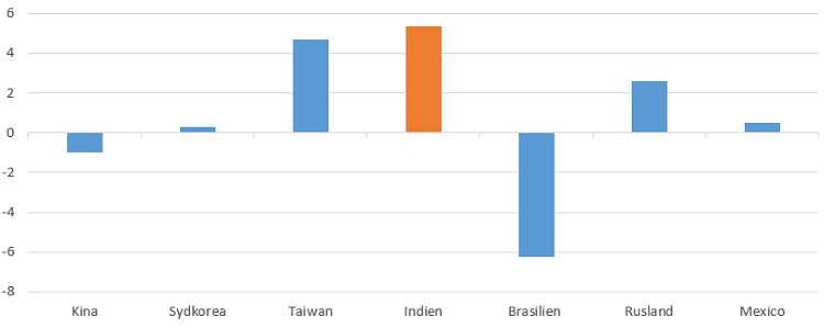 I Kina er udviklingen i China Huarong, som er Kinas største forvalter af nødlidende gæld, en kilde til usikkerhed. Selskabet har ikke leveret regnskabstal til tiden og er omgærdet af rygter om konkurs. I Indien er udviklingen i smittetallene for COVID-19 eksplosiv og bekymrende.